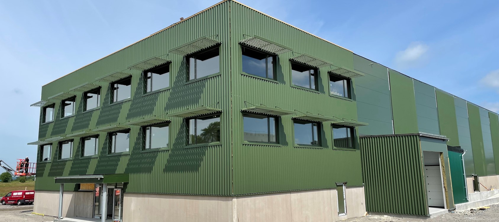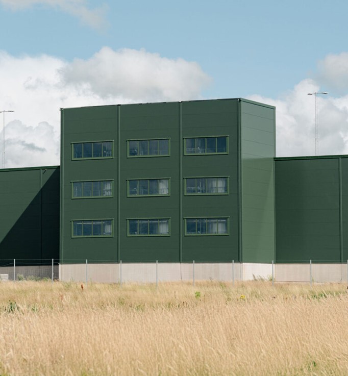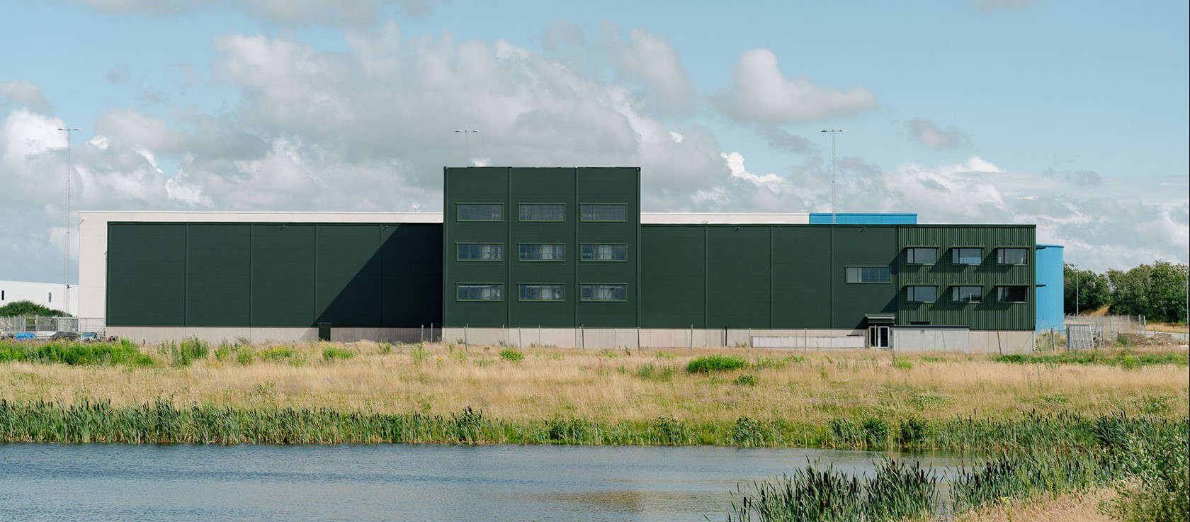 Mycorenas nya produktionsanläggning i Falkenberg. Företaget utvecklar svampteknologi och växtbaserade proteiner för livsmedelsindustrin.