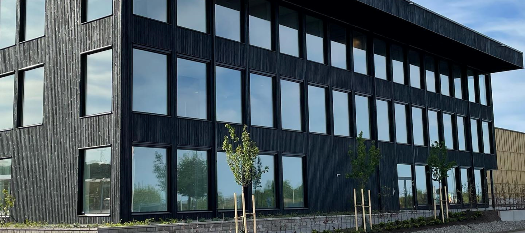 Alufasad har till projektet levererat och monterat utvändiga fönster-och dörrpartier, glastak samt invändiga kontorspartier: Alufasad Profilerat.